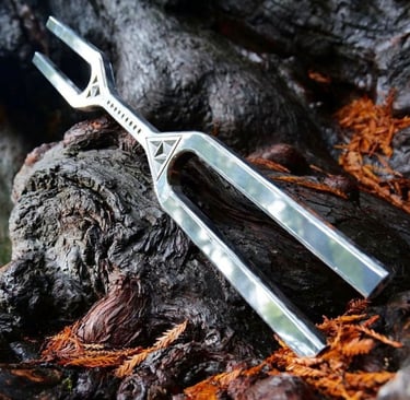 Joshua Reff, guided by inspiration and deep study of hermetic arts, created the first Earth Tuned tuning fork - not just an instrument, but a harmonic embodiment of philosophical and mathematical ideals. He then scaled this original fork into the larger, more resonant forms seen today.